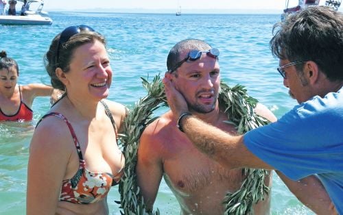 Κίνδυνοι υπάρχουν, νικητής είναι η θέληση. Χαρακτηριστική είναι η ιστορία του 47χρονου σήμερα δασκάλου Χριστόφορου Μπατσή. Το 2005 εκπληρώνοντας ένα τάμα, ρίχθηκε στα νερά. «Ο καιρός δεν ήταν όπως περιμέναμε. Βγήκαν 5 μποφόρ. Η συνοδευτική βάρκα απομακρύνθηκε, χάθηκα… Επειτα από αναζήτηση τριών ωρών με εντόπισαν στη Μεταμόρφωση. Δεν το έβαλα κάτω, πάλευα με τα κύματα 14 ώρες και τα κατάφερα… Ο κόσμος χειροκροτούσε, εγώ έκλαιγα. Ηταν μια απίστευτη οδύσσεια, αλλά δεν το μετάνιωσα ποτέ»! Στον φετινό αγώνα πρώτος τερμάτισε ο 15χρονος Κύπριος Ματθαίος Χουζούρης (7.12′), δεύτερος ο Αργεντίνος Ραβάνγκα Ιγκνάσιο (7.14′) και τρίτος ο Γιώργος Σταυρόπουλος (7. 15′).