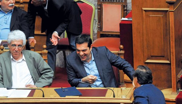 Καλοδιάθετος εμφανίστηκε ο Αλέξης Τσίπρας στην Ολομέλεια. Ομως έσκασε στα γέλια όταν τον πλησίασε ο Χρήστος Μαντάς. Ο βουλευτής του ΣΥΡΙΖΑ κάτι είπε στον πρωθυπουργό, που είχε βάλει το χέρι του στον ώμο του, και αμέσως ο κ. Τσίπρας ξέσπασε σε γέλια. Στο ίδιο κλίμα και ο Νίκος Παρασκευόπουλος.