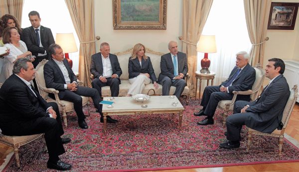 «Εκλογές και καταλλαγή» περιελάμβανε το πολιτικό μενού στο χθεσινό «γεύμα της δημοκρατίας» στο Προεδρικό Μέγαρο, με αφορμή την 41η επέτειο από τη Μεταπολίτευση. Στο γεύμα (με θαλασσινά) του Πρ. Παυλόπουλου παρακάθησαν ο πρωθυπουργός Αλ. Τσίπρας και οι αρχηγοί Ευ. Μεϊμαράκης, Στ. Θεοδωράκης, Π. Καμμένος, Φώφη Γεννηματά καθώς και ο κοινοβουλευτικός εκπρόσωπος του ΚΚΕ Θ. Παφίλης (λόγω απουσίας εκτός Αθηνών του Δ. Κουτσούμπα). Συζητήθηκαν όλες οι εξελίξεις, μετά και την ολοκλήρωση της ψήφισης των προαπαιτουμένων από τη Βουλή, οι προοπτικές στο εσωτερικό με φόντο και το τραπεζικό ζήτημα, ενώ επισημάνθηκε η μεταστροφή κλίματος στο εξωτερικό μετά την ολοκλήρωση της κοινοβουλευτικής διαδικασίας.