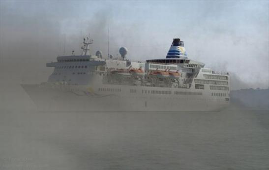 Το κρουαζιερόπλοιο παραμένει ανοιχτά του λιμένα της Χίου.