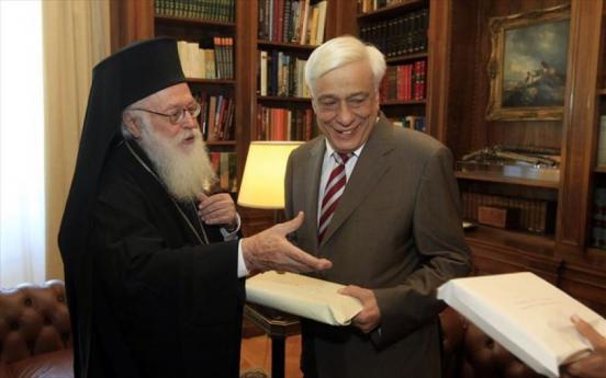 ΠΡΟΕΔΡΟΣ: Μακαριώτατε, σας ευχαριστώ θερμώς για την επίσκεψη αυτή. Με ιδιαίτερη χαρά σας υποδέχομαι στο Προεδρικό Μέγαρο και θέλω να σας πω – και το οφείλω αυτό και ως Έλληνας πολίτης αλλά και ως Πρόεδρος της Δημοκρατίας – ότι είμαι περήφανος, όπως είμαστε περήφανοι όλοι οι Έλληνες, για το μεγάλο έργο σας. Που δεν είναι έργο μόνο για την Ελλάδα, αλλά είναι έργο για την Ορθοδοξία. Εύχομαι ο Θεός να σας δυναμώνει, ώστε να φέρετε σε πέρας το έργο αυτό. Και μακάρι το δικό σας παράδειγμα να βρει μιμητές, όχι μόνο εντός Ελλάδος, αλλά γενικότερα στο χώρο της Ορθοδοξίας. Να είσθε καλά και να είναι ο Θεός μαζί σας.