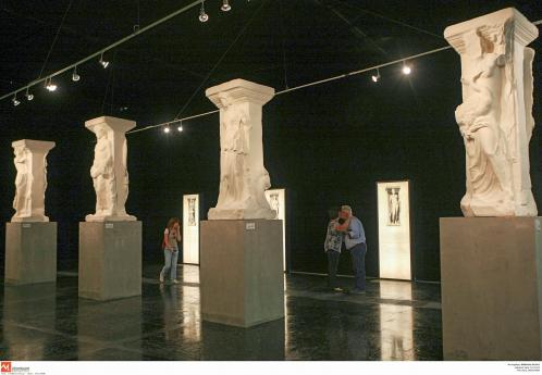 Τα τέσσερα μνημειώδη αμφίπλευρα γλυπτά, η Μαινάδα, η Νίκη, ο Διόνυσος, η Αύρα, η Αριάδνη, ο Διόσκουρος, η Λήδα και ο Γανυμήδης βρήκαν προσωρινά τη θέση τους στο περίπτερο 3 του Διεθνούς Εκθεσιακού Κέντρου Θεσσαλονίκης, όπου θα εκτίθενται κατά τη διάρκεια της 80ής ΔΕΘ.