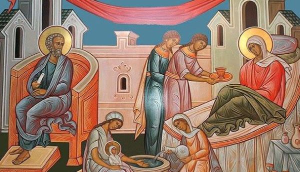 Είναι γνωστό ότι τα τέσσερα Ευαγγέλια δεν παρέχουν πληροφορίες για την καταγωγή και τη γέννηση της Θεοτόκου. Τις σχετικές πληροφορίες τις αντλούμε από το απόκρυφο Πρωτευαγγέλιο του Ιακώβου (2ος αιώνας), σύμφωνα με το οποίο η Θεοτόκος γεννήθηκε στα Ιεροσόλυμα με θαυματουργικό τρόπο από μια ενάρετη γηραιά γυναίκα, ονόματι Άννα (εξελληνισμένος τύπος του εβραϊκού Χάνα = εύνοια, χάρη), μετά από επίμονες δεήσεις προς τον Θεό, αυτής και του συζύγου της Ιωακείμ. Η Άννα ήταν στείρα και συνεπώς άτεκνη, γεγονός που εθεωρείτο ντροπή στην ιουδαϊκή κοινωνία της εποχής της.