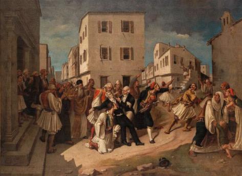 Η δολοφονία του Ιωάννη ΚαποδίστριαΣτις 5:35 το πρωί της 27ης Σεπτεμβρίου 1831 ο Ιωάννης Καποδίστριας δέχθηκε δολοφονική επίθεση από τον Κωνσταντίνο και τον Γεώργιο Μαυρομιχάλη έξω από την εκκλησία του Αγίου Σπυρίδωνα, όπου μετέβαινε για να εκκλησιασθεί και έπεσε νεκρός. Ο μόνος που τον συνόδευε ήταν ο μονόχειρας σωματοφύλακάς του, ονόματι Κοκκώνης.