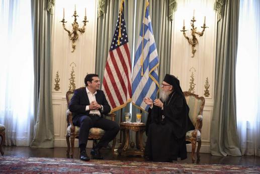 Ο Πρωθυπουργός Αλέξης Τσίπρας συναντήθηκε με τον Αρχιεπίσκοπο Αμερικής Δημήτριο. Ο Πρωθυπουργός υπογράμμισε την σημασία του ρόλου της Αρχιεπισκοπής για την Ομογένεια των ΗΠΑ και τον διαβεβαίωσε για την στενή συνεργασία των ελληνικών αρχών στο έργο αυτό. Συζήτησαν, επίσης, για την ανέγερση της Εκκλησίας του Αγίου Νικολάου, που καταστράφηκε με την πτώση των Δίδυμων Πύργων στις 11/9, σαν ένα συμβολικό έργο ελπίδας για έναν πιο ειρηνικό κόσμο. Ο Πρωθυπουργός συνεχάρη τον Αρχιεπίσκοπο για το φιλανθρωπικό του έργο και τις πρωτοβουλίες του για την στήριξη της Ελλάδας κατά την περίοδο της κρίσης, ενώ συμφώνησαν ότι οι σχέσεις συνεργασίας θα συνεχιστούν σε στενή και εγκάρδια βάση.