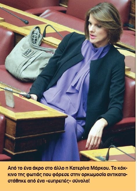 Φυσικά, για ακόμη μία φορά σε πρώτο πλάνο βρέθηκαν οι γυναίκες της Βουλής, με τη βουλευτή του Ποταμιού Κατερίνα Μάρκου, μετά το κόκκινο «αποκαλυπτικό» σύνολο που επέλεξε στην ορκωμοσία, προχθές να φορά κάτι μάλλον υπερβολικά σοβαρό.