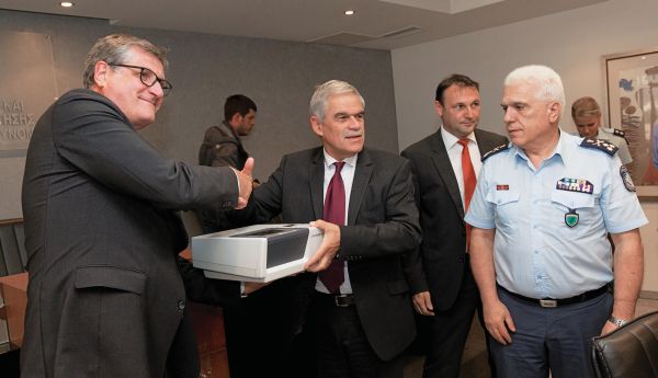 Τον εξοπλισμό παρέλαβε χτες από τον πρεσβευτή της Γερμανίας Πέτερ Σουφ ο αναπληρωτής υπουργός Προστασίας του Πολίτη Νίκος Τόσκας. Οπως έγινε γνωστό κατά τη διάρκεια της επίσημης τελετής παραλαβής, τα συστήματα ταυτοποίησης Εurodac θα τοποθετηθούν μέσα στις επόμενες ημέρες στα νησιά του Αιγαίου που δέχονται τα μεγαλύτερα κύματα μεταναστών και προσφύγων.