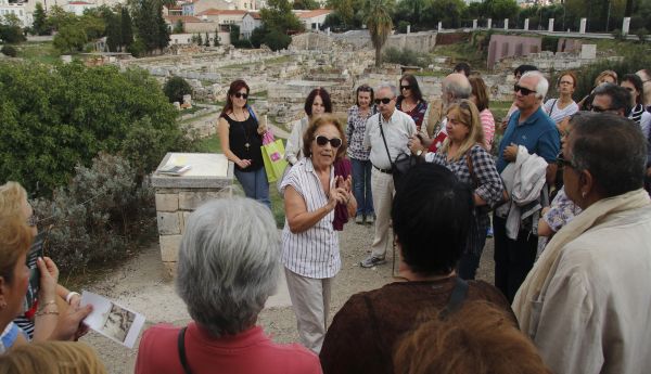 Στα Τείχη του Θεμιστοκλή η ξεναγός διαβάζει ένα απόσπασμα από τη «Σατραπεία» του Καβάφη. «Τι συμφορά, ενώ είσαι καμωμένος για τα ωραία και μεγάλα έργα… και πηγαίνεις στον μονάρχην Αρταξέρξη, που ευνοϊκά σε βάζει στην αυλή του… Κάποια σύνδεση πρέπει να υπάρχει εδώ, τι λέτε; Ο Θεμιστοκλής ήταν μια δαιμόνια προσωπικότητα, κατάφερε να πείσει τους Αθηναίους να εγκαταλείψουν την πόλη τους, αλλά έκανε και τη σωστή πρόβλεψη για τα στενά της Σαλαμίνας» συνεχίζει η κυρία Γαλανοπούλου, την ώρα που κάποιοι ξεκουράζονται στις αρχαίες πέτρες, χαζεύουν τις φορτωμένες με καρπούς ελιές και τις ροζ πικροδάφνες. Επόμενη στάση στην Ιερά Οδό, το Δημόσιο Σήμα και το Δίπυλο. «Ακριβώς σε αυτό το επίπεδο περπατούσαν οι Αθηναίοι στην Κλασική Εποχή. Από αυτό τον δρόμο ξεκινούσε η γιορτή των Παναθηναίων. Εδώ θάβονταν οι επιφανείς άνδρες και σε ένα ψηλό σημείο ανέβηκε ο Περικλής για να εκφωνήσει τον Επιτάφιό του προς τιμήν των νεκρών του πρώτου έτους του Πελοποννησιακού Πολέμου». Ακολουθούν το Πομπείο, η περίφημη κρήνη του Κεραμεικού, η αναφορά στη γιορτή της θεάς Αθηνάς -«την… Πρωτοχρονιά των Αθηναίων»- και η ξενάγηση ολοκληρώνεται με την επίσκεψη στο Μουσείο του Κεραμεικού. Ο ήλιος έχει πέσει πια, οι παρέες σκορπίζονται στο Θησείο και το Γκάζι, ενώ 10-15 άτομα πολιορκούν την ξεναγό. «Συγχαρητήρια! Περάσαμε υπέροχα! Πού έχετε ξενάγηση την επόμενη εβδομάδα;»
