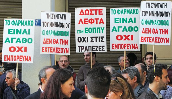 Οπως δήλωσε ο πρόεδρος του Πανελλήνιου Φαρμακευτικού Συλλόγου (ΠΦΣ) Κώστας Λουράντος, «την ώρα που οι δανειστές ζητούν από τη χώρα μας την αλλαγή του ιδιοκτησιακού καθεστώτος στα φαρμακεία, η Ανγκελα Μέρκελ υπέγραψε συμφωνία με τους Γερμανούς φαρμακοποιούς για μη αλλαγή του ιδιοκτησιακού καθεστώτος στα φαρμακεία τους έως το 2030».