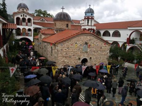 Κατά την κυριώνυμη ημέρα της πανηγύρεως, ο Σεβασμιώτατος χοροστάτησε στον Όρθρο και τέλεσε τη Θεία Λειτουργία, έχοντας συλλειτουργούς, εκτός από τον άγιο Πρωτοσύγκελλο π. Νικόδημο και τον άγιο Καθηγούμενο Αρχιμ. Γαβριήλ Εμμανουηλίδη, πολλούς ακόμη Ιερείς της Ιεράς μας Μητροπόλεως, όπως και παρεπίδημους – προσκυνητές, αλλά και τους Ιερομονάχους αδελφούς της Μονής.