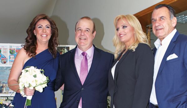 Είχε προηγηθεί η άφιξη της δημοσιογράφου Χριστίνας Λαμπίρη και του συζύγου της, κοινοτάρχη Πικερμίου, Θανάση Αδαμόπουλου, οι οποίοι εκτέλεσαν χρέη μαρτύρων στον πολιτικό γάμο του ζευγαριού, που τέλεσε ο δήμαρχος Βασίλης Πιστικίδης. Η νύφη, που κρατούσε ανθοδέσμη από λευκά τριαντάφυλλα, φορούσε ένα λιτό μπλε, μάξι φόρεμα, το οποίο άφηνε ακάλυπτο τον έναν ώμο της.