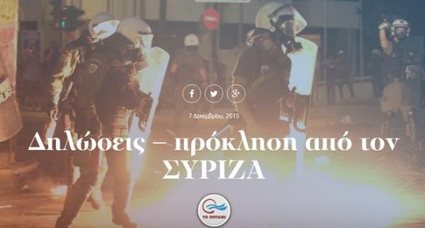 Η αλήθεια είναι ότι ο κ.Τσίπρας και η κυβέρνησή του δεν σχολίασαν τα όσα θλιβερά έγιναν στην Αθήνα και σε άλλες πόλεις της Ελλάδας το Σαββατοκύριακο. Λόγω, λοιπόν, της απουσίας πρόσφατων δηλώσεων οι μηχανές αναζήτησης όταν πληκτρολογείς “βία – μολότοφ – δηλώσεις ΣΥΡΙΖΑ”, εμφανίζουν αναρτήσεις από τα χρόνια της αντιπολίτευσης. Δεν έχουν τη νοημοσύνη να αντιληφθούν ότι ο ΣΥΡΙΖΑ είναι πλέον κυβέρνηση”.