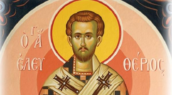 Ο Άγιος Ελευθέριος, τη μνήμη του οποίου η εκκλησία μας γιορτάζει στις 15 Δεκεμβρίου, γεννήθηκε τον 2o αιώνα μ. Χ. στην Ελλάδα (κατά άλλους στην Ρώμη) από πλούσιους γονείς. Τότε αυτοκράτορας ήταν ο Κόμμοδος και ο Σεπτίνος Σεβήρος. Ορφανός από πατέρα, ανατράφηκε σύμφωνα με τις επιταγές του Ευαγγελίου από την ευσεβέστατη και φιλάνθρωπη μητέρα του, Ανθία, η οποία έγινε χριστιανή ακούοντας το κήρυγμα από μαθητές του Απ. Παύλου.