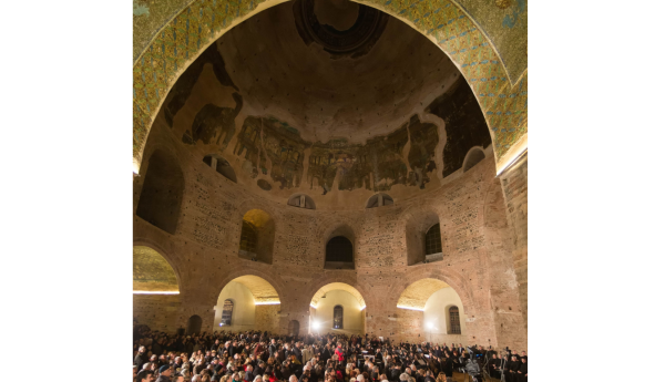 Δέος και ρίγη συγκίνησης ένιωσαν εκατοντάδες πολίτες, όταν άκουσαν να ψάλλεται ο Ακάθιστος Υμνος μέσα στη Ροτόντα. Οι επιβλητικές φωνές ιεροψαλτών και χορωδών καθήλωσαν όσους βρέθηκαν το βράδυ της Παρασκευής στο εντυπωσιακό μνημείο και συμμετείχαν στην τελετή που έγινε με αφορμή την παράδοσή του στον λαό της Θεσσαλονίκης. «Μνημείο, μουσείο και ναός μαζί», η Ροτόντα παραδόθηκε στο κοινό ύστερα από 40 χρόνια και αφού ολοκληρώθηκαν οι εργασίες για την αναστήλωσή της.