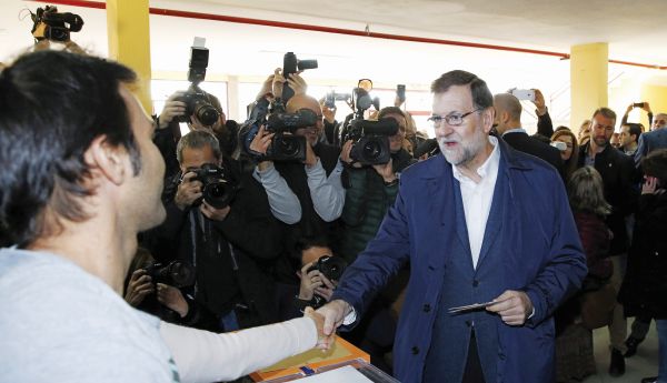 Το Λαϊκό Κόμμα του Μαριάνο Ραχόι, που είχε κερδίσει τις εκλογές του 2011 με ποσοστό 45% υπερβαίνοντας το όριο των 176 εδρών της αυτοδυναμίας, προηγείται σύμφωνα με τα exit polls με ποσοστό 27% (του εξασφαλίζει 114-124 έδρες). Μάχη για να κρατήσουν τη δεύτερη θέση δίνουν οι Σοσιαλιστές (79-85 έδρες στη δημοσκόπηση κάλπης), που πιέζονται από τους αριστερούς Podemos (70-80 έδρες). Οι κεντρώοι Ciudadanos, το δεύτερο νέο κόμμα που μαζί με τη ριζοσπαστική Αριστερά επιχειρεί να διεμβολίσει τους δύο παραδοσιακούς πόλους της ισπανικής πολιτικής των τελευταίων 38 ετών, έπονται με διαφορά (46-50 έδρες).