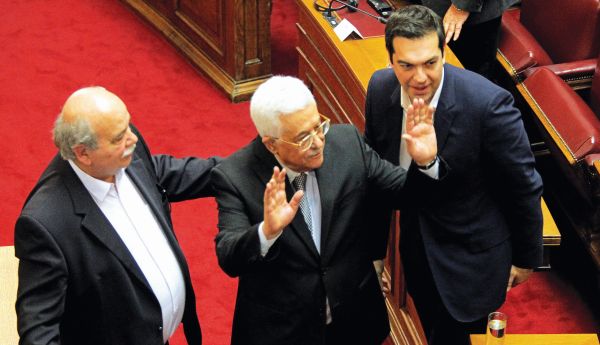 Οι βουλευτές υποδέχθηκαν τον Παλαιστίνιο ηγέτη με ένα παρατεταμένο χειροκρότημα και εκείνος τους αποζημίωσε χαρακτηρίζοντας «μεγαλειώδες» το βήμα της ελληνικής κυβέρνησης να αναγνωρίσει κράτος της Παλαιστίνης που θα καταγραφεί όπως είπε «στην Ιστορία και την πορεία του παλαιστινιακού λαού». «Αισθανόμαστε μεγάλη υπερηφάνεια που παρευρισκόμαστε σήμερα στο προπύργιο της ελληνικής δημοκρατίας» συνέχισε ο παλαιστίνιος ηγέτης και εξέφρασε εξ ονόματος του παλαιστινιακού λαού ευγνωμοσύνη και ευαρέσκεια προς τον ελληνικό λαό.