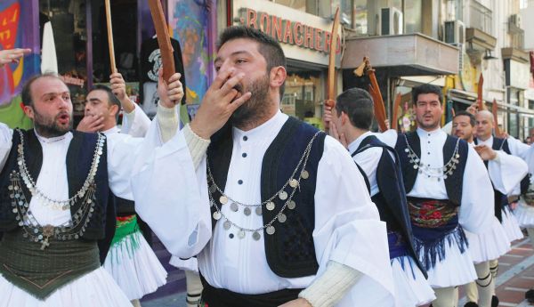 Φουστανελάδες ξεσήκωσαν χθες με χορούς και τραγούδια το κέντρο της Θεσσαλονίκης. Φουστανελοφόροι από τη Χαλάστρα, με ζουρνάδες, νταούλια και κρατώντας στα χέρια σπαθιά χόρεψαν στους κεντρικούς δρόμους της πόλης, δίνοντας μια διαφορετική νότα στο εορταστικό κλίμα των ημερών.