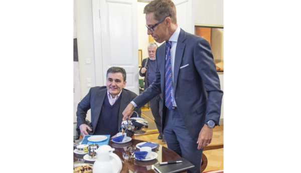 Ευτυχής για την πρόοδο που έχει επιτευχθεί στη δημοσιονομική σταθερότητα, στα δημοσιονομικά μέτρα και στις μεταρρυθμίσεις δήλωσε χθες ο Φινλανδός υπουργός Οικονομικών Αλεξάντερ Στουμπ μετά τη συνάντηση με τον Ελληνα ομόλογό του Ευκλείδη Τσακαλώτο στο Ελσίνκι.