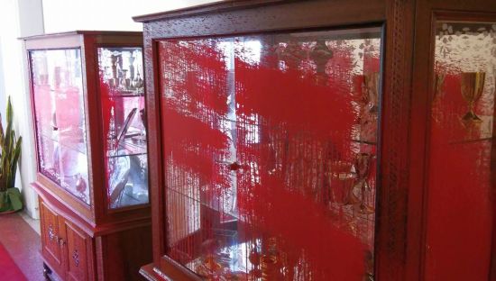 Αίσχος! Κουκουλοφόροι με κόκκινες μπογιές εισέβαλαν στα γραφεία και λέρωσαν εικόνες και ιερά κειμήλια! Ανθιμος: Κράτος είναι αυτό;