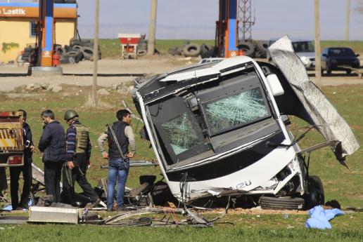 Δεύτερη, μέσα σε 24 ώρες, βομβιστική επίθεση με στόχο στρατιωτικό κομβόι και τουλάχιστον επτά νεκρούς δέχθηκε χθες το πρωί η Τουρκία, αυτήν τη φορά στην κατοικημένη από Κούρδους κυρίως επαρχία του Ντιγιαρμπακίρ, σε οδικό άξονα που το συνδέει με την περιφέρεια του Λιτζέ. Οι νεκροί, σύμφωνα με τη «Zaman», είναι άνδρες των δυνάμεων ασφαλείας. Η επίθεση σημειώθηκε ακριβώς τη στιγμή που ο πρωθυπουργός Νταβούτογλου ανακοίνωνε την ταυτότητα του Σύρου δράστη της επίθεσης στην Αγκυρα και την ώρα που τα τουρκικά μαχητικά βομβάρδιζαν μαζικά θέσεις Κούρδων τόσο στη Συρία όσο και στο βόρειο Ιράκ, σκοτώνοντας πάνω από 60 αντάρτες, σύμφωνα με τις ανακοινώσεις του τουρκικού επιτελείου. Η επίθεση στο Ντιγιαρμπακίρ έγινε με αυτοσχέδια βόμβα, που παραπέμπει πράγματι στα μέσα που χρησιμοποιούν οι Κούρδοι αυτονομιστές, σε αντίθεση με την επίθεση της Τετάρτης (που πάντως αποδόθηκε επίσης στους Κούρδους) με όχημα παγιδευμένο με εκρηκτικά.