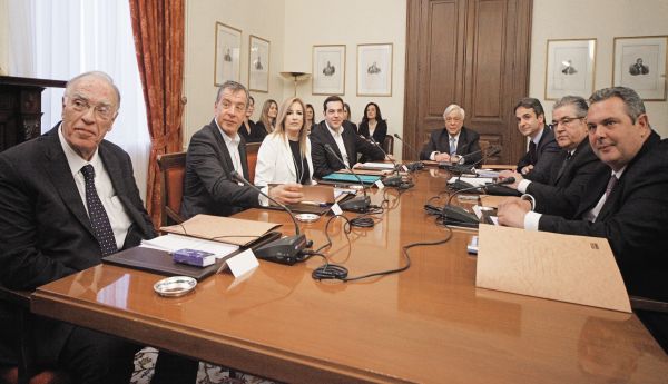 Χαρακτηριστικές ήταν οι δηλώσεις του Κυριάκου Μητσοτάκη και της Φώφης Γεννηματά αλλά και του Βασίλη Λεβέντη, ο οποίος μαζί με τον Δημήτρη Κουτσούμπα ήταν οι μόνοι που δεν υπέγραψαν το κείμενο που εκδόθηκε από την Προεδρία της Δημοκρατίας. Το κλίμα ήταν τέτοιο ώστε μέχρι και… ψηφοφορία διεξήχθη για το αν πρέπει να γίνει οικουμενική, ενώ το τελικό κείμενο καθυστερούσε για ώρες, μια και η πρόεδρος του ΠΑΣΟΚ Φώφη Γεννηματά ζητούσε να συμπεριληφθεί το θέμα της «κυβέρνησης εθνικής ενότητας»!