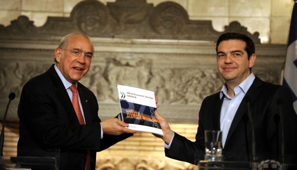 Να υλοποιηθούν γρήγορα οι μεταρρυθμίσεις, ώστε να δοθεί η δυνατότητα μιας μελλοντικής πιθανής διευθέτησης του χρέους με μεγαλύτερες περιόδους χάριτος και επιμήκυνση, ζήτησε ο γενικός γραμματέας του ΟΟΣΑ Ανχελ Γκουρία στη συνάντηση που είχε με τον Αλέξη Τσίπρα στο Μέγαρο Μαξίμου. Από την πλευρά του, ο πρωθυπουργός εμφανίστηκε αισιόδοξος για την οικονομία, λέγοντας πως αυτή η χρονιά θα είναι η τελευταία της ύφεσης. Στις κοινές δηλώσεις μετά τη συνάντηση στο Μαξίμου, ο κ. Γκουρία τόνισε ότι υπάρχουν σημάδια σταδιακής βελτίωσης της ελληνικής οικονομίας, με τα επίπεδα ανεργίας να πέφτουν. «Το ποσοστό εξακολουθεί να είναι υψηλό, αλλά είναι το χαμηλότερο από τον Μάιο του 2012» δήλωσε ο γ.γ. του ΟΟΣΑ.