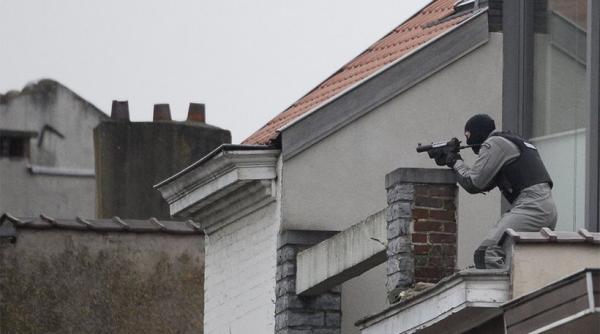 Αρχικά, πληροφορίες που δεν επιβεβαιώθηκαν από τη βελγική αστυνομία, ανέφεραν ότι δύο ύποπτοι βρίσκονταν σε στέγη κτιρίου και ότι, μάλιστα, είχαν τραυματιστεί.