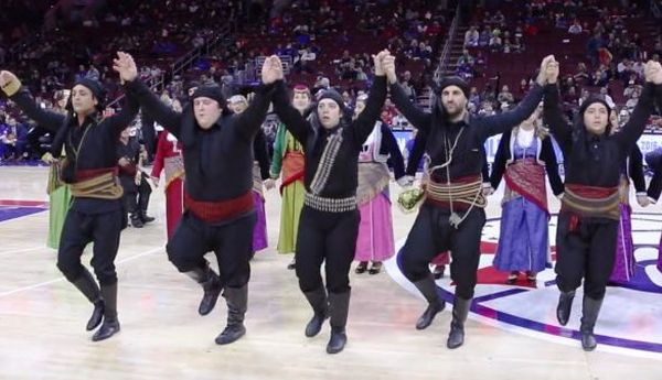 Τα ξημερώματα του Σαββάτου, στο ημίχρονο του αγώνα Σίξερς – Νικς στη Φιλαδέλφεια, οι διοργανωτές παρέδωσαν μαθήματα Ιστορίας και πολιτισμού. Θέλοντας να τιμήσουν την Ημέρα Ελληνικής Κληρονομιάς αλλά και την ελληνική κοινότητα της πόλης, πρόσφεραν την ευκαιρία σε παιδιά από την Κορομηλιά Κιλκίς και τον Ποντιακό Σύλλογο Φιλαδέλφειας «ΑΚΡΙΤΑΙ» να παρουσιάσουν έναν ποντιακό χορό, ενώ, στο φινάλε, οι χορευτές και Ελληνες που κάθισαν οργανωμένα στη θύρα 107 του γηπέδου συναντήθηκαν με τον γκαρντ των Σίξερς Νικ Στάουσκας.