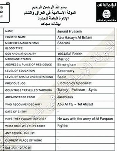 Ολοι οι εθελοντές, σύμφωνα με τα ντοκουμέντα που διέρρευσαν, είναι υποχρεωμένοι να συμπληρώσουν ένα ερωτηματολόγιο, αναφέροντας -ανάμεσα στα άλλα- αν έχουν πολεμήσει ξανά και πού, αν κατανοούν τη σαρία και τι ρόλο θα ήθελαν στο Ισλαμικό Κράτος.