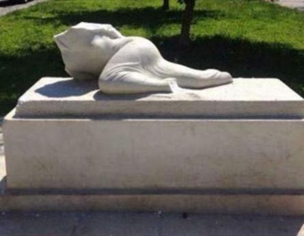 Θύμα βανδάλων έπεσε το άγαλμα της «Βορείου Ηπείρου», έργο του Κώστα Σεφερλή, το οποίο αναπαριστά μία γυναίκα με τα χέρια δεμένα πισθάγκωνα.