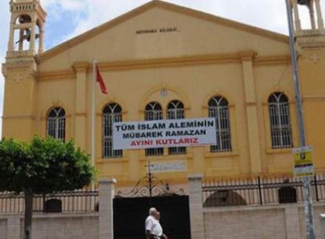 Οπως αναφέρει η εφημερίδα Daily Sabah στην Ορθόδοξη εκκλησία της Αλεξανδρέττας (Iskendurun) στο Χατάι ανάρτησαν τεράστιο πανό που γράφει: «Γιορτάζουμε τον ιερό μήνα του Ραμαζανιού σε όλο τον ισλαμικό κόσμο».