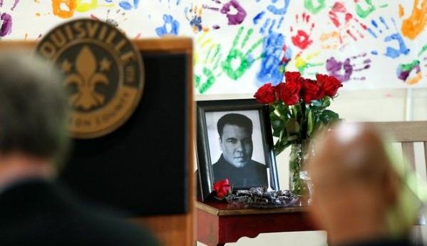 Η ζανάζα, η κηδεία στα αραβικά, τελέστηκε στην αίθουσα συνεδρίων του Φρίντομ Χολ, στο ίδιο συγκρότημα όπου ο πρώην παγκόσμιος πρωταθλητής βαρέων βαρών νίκησε τον Γουίλι Μπέσμανοφ το 1961, στον τελευταίο αγώνα που έδωσε στο Λούισβιλ του Κεντάκι.