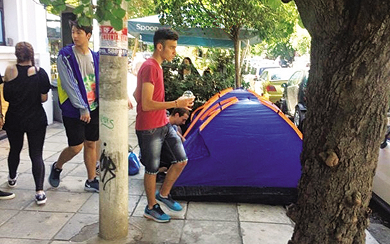 Μίνι κατασκήνωση για ένα ζευγάρι… συλλεκτικά παπούτσια είχε στηθεί από την Τετάρτη έξω από κατάστημα αθλητικών ειδών στο κέντρο της Θεσσαλονίκης. Νεαροί έστησαν τρία αντίσκηνα στο πεζοδρόμιο επί της οδού Παλαιών Πατρών, προκειμένου να… κρατήσουν σειρά για το πολυπόθητο ζευγάρι αθλητικών Adidas Yeezy Boost 750, που κοστολογείται στα 350 ευρώ, και μόλις 50 ζευγάρια θα φτάσουν σε ολόκληρη την Ελλάδα!