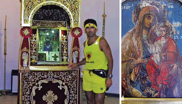 Θέλει να ευχαριστήσει την Παναγία, επειδή τον βοήθησε να εκπληρώσει ένα τάμα ζωής. Nα διανύσει πέρυσι τρέχοντας επί 27 ημέρες χιλιάδες χιλιόμετρα από την Παναγία Σουμελά Βερμίου ως την ιστορική μονή της Παναγίας Σουμελά στον Πόντο.