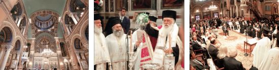 Χθες το πρωί τελέστηκε με κάθε επισημότητα και η πρώτη θεία λειτουργία, προεξάρχοντος του Αρχιεπισκόπου Ιερωνύμου και συλλειτουργούντων των μητροπολιτών Μαντινείας Αλεξάνδρου, Λαρίσης Ιγνατίου, Νίκαιας Αλεξίου, Ναυπάκτου Ιεροθέου, Σάμου Ευσεβίου, Καστοριάς Σεραφείμ, Κασσανδρείας Νικοδήμου, Σερρών Θεολόγου, Σιδηροκάστρου Μακαρίου, Νεοχωρίου Παύλου και του επισκόπου Μεθώνης Κλήμη. Παρέστησαν επίσης ο εκπρόσωπος του Πατριαρχείου Αλεξανδρείας, μητροπολίτης Γουινέας Γεώργιος, και ο έξαρχος του Παναγίου Τάφου, αρχιμανδρίτης Δαμιανός Πάνου.