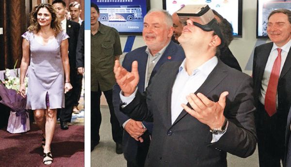 Ο Αλέξης Τσίπρας, φορώντας τα ειδικά hi-tech γυαλιά, «δραπετεύει» στο success story της εικονικής πραγματικότητας, στην έδρα της κινεζικής εταιρίας τηλεπικοινωνιών ZTE στη Σανγκάη. Οσο για την Περιστέρα Μπαζιάνα, μετά το στράπλες φόρεμα που συζητήθηκε πολύ, επέλεξε αυτή τη φορά ένα απλό σύνολο, σε καλοκαιρινή λιλά απόχρωση…