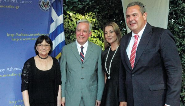 Ηταν ακόμα μία ξεχωριστή βραδιά, με έντονα, όπως πάντα, τα μέτρα ασφαλείας και τους οικοδεσπότες, τον Αμερικανό πρεσβευτή Ντέιβιντ Πιρς και τη σύζυγό του, να υποδέχονται χαμογελαστοί τους επισκέπτες. Ανάμεσα σε αυτούς ήταν ο πρώην πρωθυπουργός Αντώνης Σαμαράς, ο πρόεδρος της Βουλής Νίκος Βούτσης, ο πρόεδρος της Ενωσης Κεντρώων Βασίλης Λεβέντης, καθώς και οι υπουργοί Παιδείας Νίκος Φίλης, Εργασίας Γιώργος Κατρούγκαλος, Μεταφορών Χρήστος Σπίρτζης, Εθνικής Αμυνας Πάνος Καμμένος, Περιβάλλοντος και Ενέργειας Πάνος Σκουρλέτης και Εσωτερικών Παναγιώτης Κουρουμπλής.