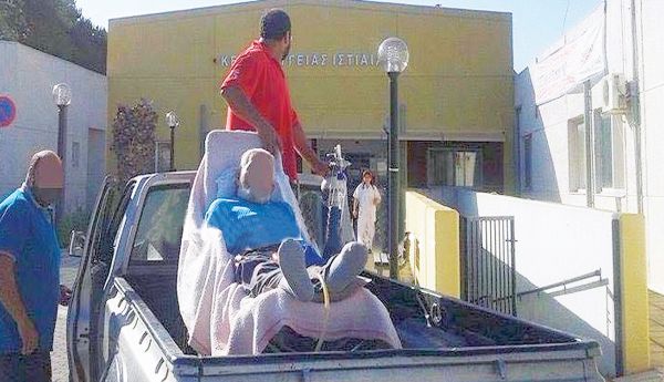 Στην καρότσα ενός αγροτικού αυτοκινήτου αναγκάστηκαν να φορτώσουν έναν ασθενή μαζί με το κρεβάτι του και τη φιάλη οξυγόνου (!) προκειμένου να φτάσει έγκαιρα στο νοσοκομείο.