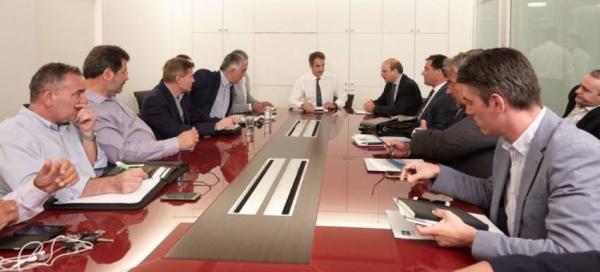 O πρόεδρος της Νέας Δημοκρατίας, Κυριάκος Μητσοτάκης, συναντήθηκε σήμερα στα κεντρικά γραφεία του Κόμματος, με το προεδρείο της Κεντρικής Ένωσης Δήμων Ελλάδας (ΚΕΔΕ).