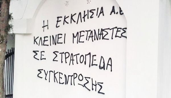 «Η Εκκλησία Α.Ε. κλείνει μετανάστες σε στρατόπεδα συγκέντρωσης», «Κάτω τα ξερά σας από τις καταλήψεις» και «Satan I love you» («Σατανά, σε αγαπώ») ήταν μόνο μερικά από τα συνθήματα που έγραψαν οι ιερόσυλοι. Αξίζει πάντως να σημειωθεί ότι παρά το μέγεθος των καταστροφών ο υπεύθυνος του ναού πατέρας Χρήστος Δημητρόπουλος φρόντισε ώστε ο ιερός χώρος να επιστρέψει άμεσα στην πρότερη κατάστασή του.
