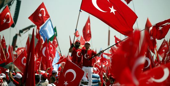 Υπό τους ήχους των στίχων του Κορανίου που ακούγονταν από τα μεγάφωνα και των εμβατηρίων, εκατοντάδες χιλιάδες Τούρκοι -η «Hurriyet» έκανε λόγο για πάνω από 3.000.000- παιανίζοντας σημαίες και λάβαρα με τις εικόνες του Ταγίπ Ερντογάν και του Κεμάλ Ατατούρκ συγκεντρώθηκαν χθες από κάθε γωνιά της χώρας στο Γενί Καπί της Κωνσταντινούπολης, σε μια φιέστα αφιερωμένη στους μάρτυρες της απόπειρας πραξικοπήματος, με την οποία ο Τούρκος πρόεδρος -που έφτασε με ελικόπτερο στην Πόλη- επέλεξε να στείλει ένα μήνυμα στη Δύση: Οτι είναι ο αδιαμφισβήτητος απόλυτος άρχοντας, που δεν ανατρέπεται, δεν ελέγχεται από κόμματα αντιπολίτευσης, δεν αποδέχεται το παραμικρό εμπόδιο στη συγκέντρωση εξουσιών που μεθοδεύει, δεν ανέχεται μαθήματα δημοκρατίας…