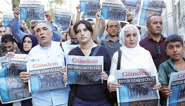 Την ίδια ώρα, συνεχίζονται και οι συλλήψεις. Μετά την απαγόρευση κυκλοφορίας της φιλοκουρδικής εφημερίδας «Ozgur Gundem», με την κατηγορία ότι διεξάγει προπαγάνδα υπέρ του PKK, η αστυνομία συνέλαβε τουλάχιστον 24 δημοσιογράφους της, ανεβάζοντας έτσι τον αριθμό των κρατούμενων εργαζομένων σε τουρκικά ΜΜΕ στους 99, με βάση τα στοιχεία της Ευρωπαϊκής Ομοσπονδίας Δημοσιογράφων. Ανάμεσα στους συλληφθέντες βρίσκεται και η βραβευμένη συγγραφέας Ασλι Ερντογάν.