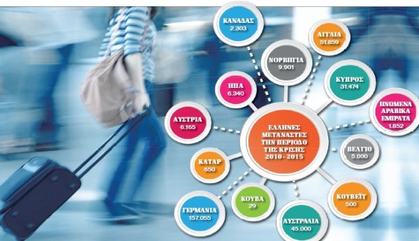 Στην προκειμένη περίπτωση το πλεονέκτημα των Ελλήνων σε σχέση με άλλες εθνότητες προσφύγων – μεταναστών που φτάνουν στη Γερμανία για να δουλέψουν είναι ότι είναι μορφωμένοι και ενσωματώνονται πιο εύκολα στο κοινωνικό σύνολο. Ακολουθούν η Βρετανία, με 51.859 Ελληνες μετανάστες τα τελευταία πέντε χρόνια, και η μακρινή Αυστραλία, με 45.000 Ελληνες μετανάστες, ενώ στην τέταρτη θέση η χώρα που έχει δεχθεί τους περισσότερους Ελληνες μετανάστες (31.474) είναι η… Κύπρος! Οι καιροί που οι Κύπριοι έφταναν στη μητέρα πατρίδα για να σπουδάσουν ή να εργαστούν παρήλθαν και τώρα οι Ελλαδίτες είναι εκείνοι που αναζητούν καλύτερη τύχη στη Μεγαλόνησο.