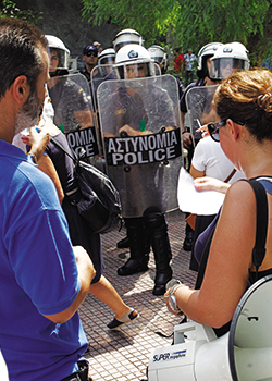 Οι εργαζόμενοι έκαναν χθες πορεία διαμαρτυρίας με τελικό σταθμό το Μέγαρο Μαξίμου, για να ζητήσουν συνάντηση με τον πρωθυπουργό. Παρά ταύτα, φθάνοντας στην Ηρώδου Αττικού συνάντησαν ένα «τείχος» από ΜΑΤ που δεν τους επέτρεψαν να προχωρήσουν.