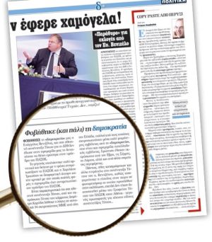 Πρόκειται, αν μη τι άλλο, για μέγιστη απρέπεια προς μια μαχητική εφημερίδα που αποκάλυψε τον καταστροφικό ρόλο του Μνημονίου από την πρώτη ημέρα της έκδοσής της. Μόνο ο κ. Βενιζέλος είχε υποπέσει στο ίδιο ολίσθημα ως πρόεδρος του ΠΑΣΟΚ, το 2014. Προς ενημέρωση των αναγνωστών μας και του Μεγάρου Μαξίμου, ιδού σε τι ακριβώς θα ζητούσε απάντηση ο πολιτικός συντάκτης μας στη Θεσσαλονίκη Νίκος Οικονόμου: