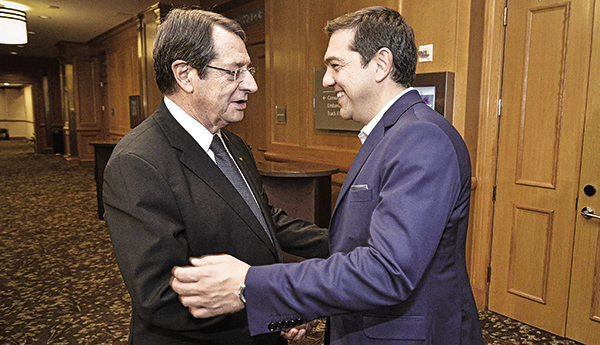 Το Κυπριακό «τρέχει» στο περιθώριο της 71ης Γενικής Συνέλευσης του ΟΗΕ με σειρά επαφών που πραγματοποιούν στη έδρα των Ηνωμένων Εθνών τόσο ο Ελληνας πρωθυπουργός Αλ. Τσίπρας όσο και ο Κύπριος Πρόεδρος Ν. Αναστασιάδης. Οι δύο άνδρες είχαν χθες μία πρώτη μακρά συνάντηση διάρκειας 45 λεπτών, όπου συζήτησαν τις εξελίξεις στο εθνικό θέμα, αλλά και χωριστές συναντήσεις με τον Αμερικανό αντιπρόεδρο Τζο Μπάιντεν.