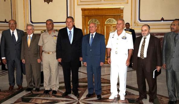 Ο Υπουργός Εθνικής Άμυνας Πάνος Καμμένος, συνοδευόμενος από τον Αρχηγό ΓΕΕΘΑ Αντιναύαρχο Ευάγγελο Αποστολάκη ΠΝ, πραγματοποιεί επίσημη επίσκεψη στην Αίγυπτο. Συναντήθηκε με τον Αιγύπτιο ομόλογό του Στρατηγό Sedky Sobhy και τον Υπουργό Στρατιωτικής Παραγωγής Dr Mohammed Saeed Al-Assar.