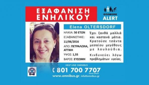 Σε θρίλερ εξελίσσεται η υπόθεση εξαφάνισης της 50χρονης Ουκρανής Έλενας Όλτερστντορφ που εξαφανίστηκε στις 11 Ιουνίου 2016 από το σπίτι της στα Πετράλωνα. Η δήλωση εξαφάνισης της έγινε από την μητέρα της που ήρθε στην Αθήνα από το εξωτερικό για αυτόν τον σκοπό, στις 14 Ιουλίου 2016.