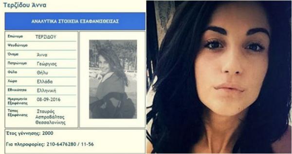 Αγωνία επικρατεί για την τύχη της 16χρονης Άννας Τερζίδου απο τον Περιστερώνα Θεσσαλονίκης που αγνοείται η τύχη εδώ και 19 ημέρες…