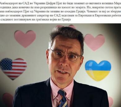 Την τοποθέτηση του Αμερικανού πρέσβη, Τζέφρι Πιάτ στην Αθήνα, σχολιάζει σκοπιανό δημοσίευμα που αναφέρει ότι «είναι ο άνθρωπος που οδήγησε στο πραξικόπημα την Ουκρανία μαζί με την αναπληρώτρια Γραμματέα του Στέιτ Ντιπάρτμεντ, αρμόδια για τις Ευρωπαϊκές και Ευρασιατικές Υποθέσεις, Βικτόρια Νούλαντ και αυτό χωρίς αμφιβολία δημιουργεί την εντύπωση ότι έρχονται προβλήματα στην Ελλάδα».